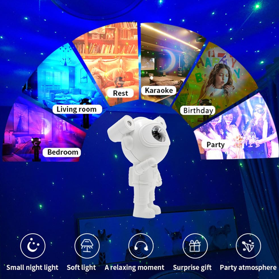 لامپ طرح ریزی فضانورد برای تولد، مهمانی، دکوراسیون اتاق، روز کودک، کریسمس، هدیه سالگرد بسیار مناسب است. به عنوان نور شب یا چراغ تزئینی، لازم نیست نگران بیدار شدن فرزندتان در اتاق تاریک باشید. میتوانید از کنترل از راه دور برای تنظیم الگوی، روشنایی و سرعت چرخش استفاده کنید تا جلوهای را که میخواهید نمایش دهید. الگوهای ستاره یا سحابی را می توان به طور همزمان یا جداگانه استفاده کرد. علاوه بر این، می توانید تایمر را روی 45 یا 90 دقیقه تنظیم کنید