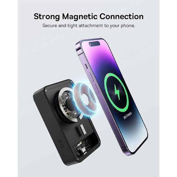 طراحی این پاوربانک با در نظرگیری کامل سازگاری با آیفونهای نسل جدید (سری 12 تا 16) انجام شده است. سیستم اتصال مغناطیسی با قدرت کافی، اتصال محکم و بدون نیاز به لوازم جانبی اضافه را garanty میکند و امکان استفاده از گوشی حتی در هنگام شارژ را فراهم میسازد.