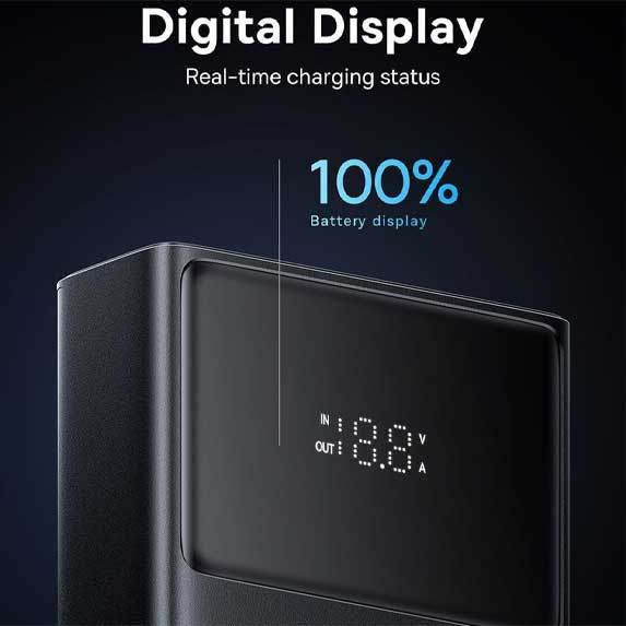 یک نمایشگر LED واضح روی بدنه تعبیه شده که درصد دقیق شارژ باقی‌مانده را نشان می‌دهد. این ویژگی به شما کمک می‌کند تا همیشه از وضعیت انرژی پاوربانک مطلع باشید و برنامه‌ریزی بهتری برای شارژ دستگاه‌های خود داشته باشید.