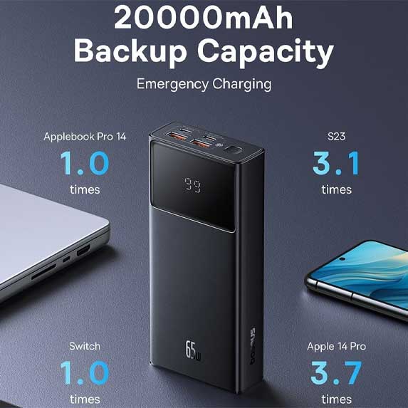 مهم‌ترین ویژگی این مدل، پورت USB-C با توان خروجی 65 وات است که از استاندارد Power Delivery (PD) پشتیبانی می‌کند. این قابلیت امکان شارژ سریع لپ‌تاپ‌ها و دیگر دستگاه‌های سازگار را فراهم می‌سازد. به عنوان مثال، می‌تواند یک لپ‌تاپ را از 0 تا 51 درصد در تنها 30 دقیقه شارژ کند.