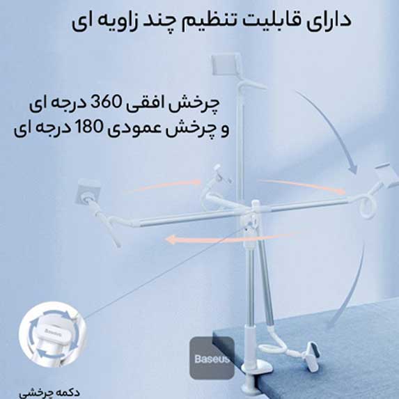 هولدر Baseus SULR-0G با طولی حدود 120 سانتیمتر و دو بازوی تلسکوپی، این امکان را به شما میدهد که گوشی خود را در هر زاویهای که دوست دارید تنظیم کنید. بازوهای این هولدر با قابلیت چرخش 360 درجه، آزادی عمل شما را به حداکثر میرسانند. دیگر نیازی نیست برای دیدن صفحه گوشی، گردن خود را خم کنید یا دستهایتان را خسته کنید!