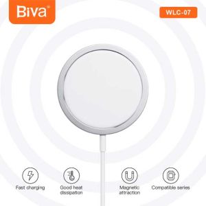 شارژر وایرلس Biva WLC-07 یک پد شارژ سریع با قابلیت اتصال مغناطیسی ارائه میدهد. مشخصات فنی و عملکردی این محصول به شرح زیر است.