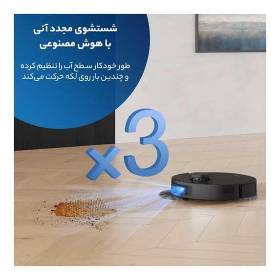 استیشن این جارو رباتیک، پدها را با آب داغ 70 درجه سانتیگراد شسته و با هوای داغ خشک میکند. این فرآیند نهتنها لکهها و آلودگیها را از بین میبرد، بلکه از رشد باکتریها و ایجاد بوهای نامطبوع نیز جلوگیری میکند.