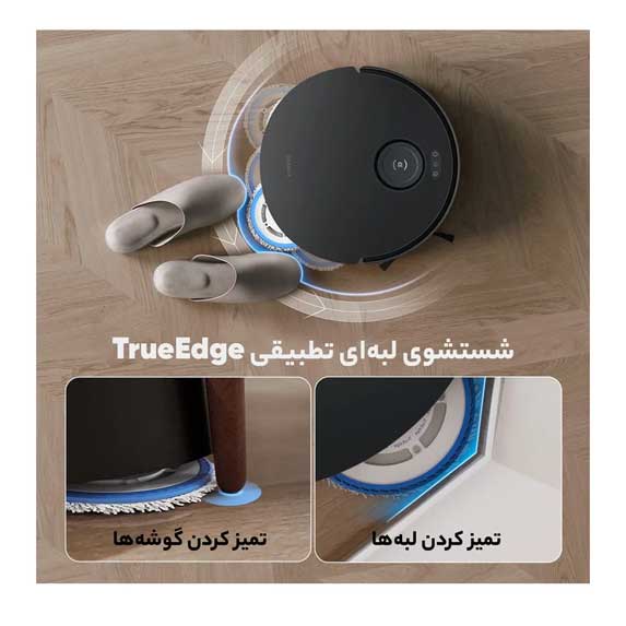 جارو رباتیک T30s Pro با فناوری TruEdge، لبهها و گوشههای دیوار را با دقت 1 میلیمتر تمیز میکند. این فناوری به دستگاه اجازه میدهد تا پد تیکشی را باز کرده و با فاصلهای بسیار کم از دیوارها و موانع، نظافتی کامل و بینقص انجام دهد. دیگر نگران جا ماندن نقاط کور نباشید!