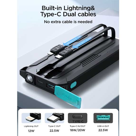 پاوربانک ضد ضربه و ضد آب جویروم مدل JR-L017 با ظرفیت 10000 میلیآمپر ساعت و توان 22.5 وات