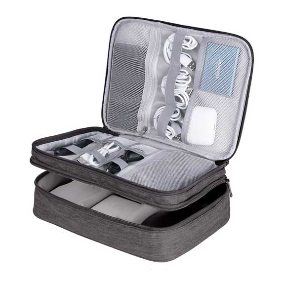 این کیف با طراحی شیک و کاربردی، امکان سازماندهی و نگهداری لوازم جانبی الکترونیکی را به شما میدهد. ساختار ضد آب، ضد ضربه و ضد خش آن از نایلون درجه یک برند LENTION تولید شده و کیفیت بالایی را ارائه میدهد. ابعاد این کیف 100×200×270 میلیمتر است و دارای دو لایه مجزا میباشد که برای قرار دادن پاوربانک، شارژر یا تلفن همراه بسیار مناسب است.