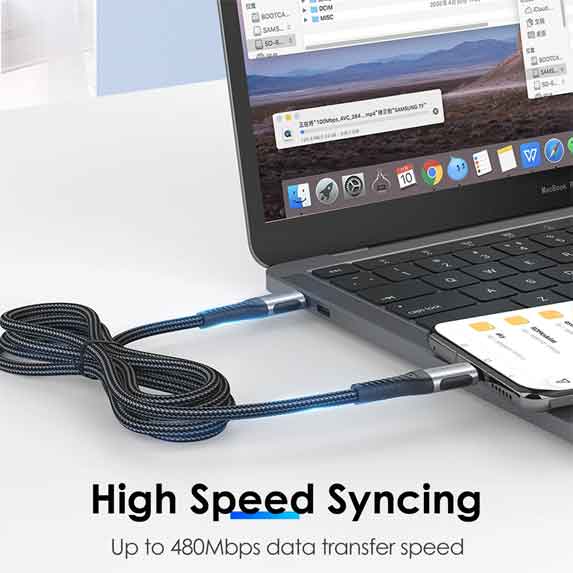 - شارژ سریع تا 100 وات: این کابل قادر است دستگاههای شما را با حداکثر توان 100 وات شارژ کند، که برای شارژ لپتاپها، تبلتها و گوشیهای هوشمند ایدهآل است.