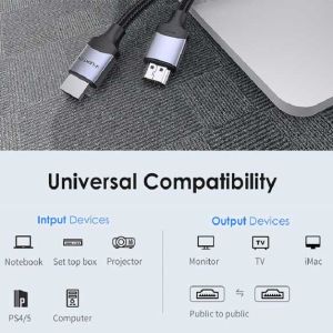 - رزولوشن 8K با نرخ 60Hz: از تماشای تصاویر فوق‌شارپ و روان لذت ببرید! این کابل از رزولوشن 8K با نرخ تازه‌سازی 60Hz پشتیبانی می‌کند و جزئیات تصویر را به بهترین شکل ممکن نمایش می‌دهد.