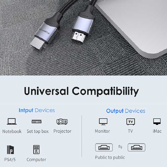 - سازگاری گسترده: با تلویزیون‌های ال جی، سونی، سامسونگ و کارت‌های گرافیک تا مدل RTX3080 و بسیاری از دستگاه‌های دیگر سازگار است.