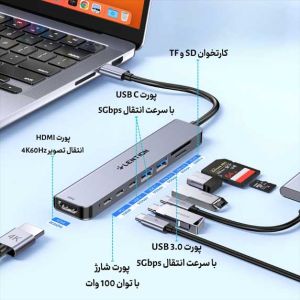 *پورت کارتخوان SD و Micro SD*: این هاب دارای پورتهای کارتخوان است که به شما اجازه میدهد کارتهای حافظه را به راحتی متصل کنید و دادهها را منتقل کنید.