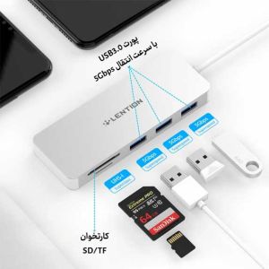 - انتقال داده با سرعت 5 گیگابایت بر ثانیه: این هاب با پشتیبانی از سرعت بالا، امکان انتقال سریع فایلهای بزرگ را فراهم میکند.