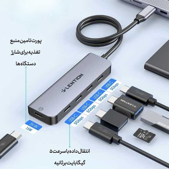 هاب 5 پورت CE31 USB-C از برند لنشن ، یک وسیله مفید برای کاربرانی است که میخواهند پورتهای بیشتری با استاندارد USB-C به دستگاههایشان اضافه کنند. با این هاب، شما میتوانید تا 4 دستگاه USB-C را به طور همزمان به دستگاه خود وصل کرده و اطلاعات را با سرعتی برابر با 5 گیگابیت بر ثانیه انتقال دهید. پورت تامین انرژی USB-C نیز امکان شارژ دستگاههای USB-C را فراهم میآورد، در حالی که پورت دیگر USB-C به منظور بهبود ثبات اتصال و فراهم کردن برق برای دستگاههای خارجی طراحی شده است. این هاب کاملاً با انواع دستگاههای USB-C همچون MacBook Pro، iPad Pro، Chromebook و دیگر محصولات جدید سازگاری دارد و به عنوان ابزاری عالی برای افزایش کارایی دستگاه شما محسوب میشود.