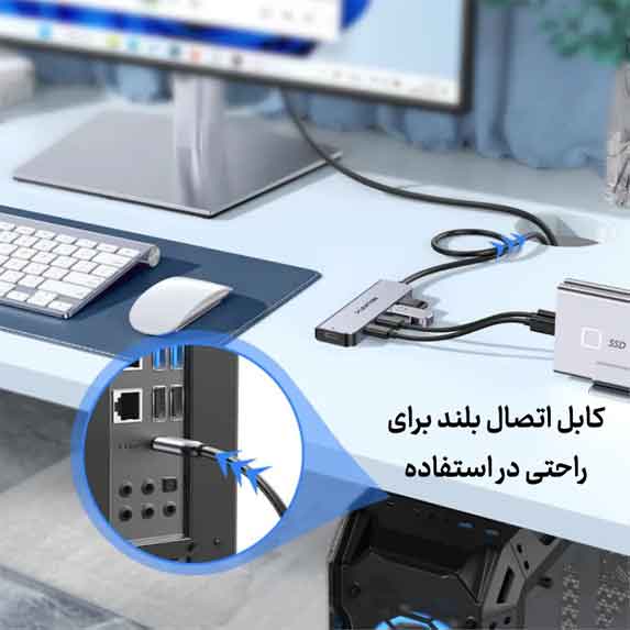 *اتصال همزمان چند دستگاه:* تا 4 دستگاه مانند کیبورد، موس، فلشدرایو، هارد اکسترنال و سایر لوازم جانبی را بهراحتی و بدون هیچ تداخلی به هم متصل کنید.