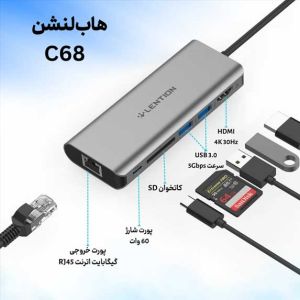 در میان برندهای معتبر تولیدکننده لوازم جانبی، *لنشن (Lention)* به عنوان یک شرکت قابل اعتماد و پیشرو در این حوزه شناخته میشود. یکی از محصولات برجسته این برند، *هاب 6 پورت C68 USB-C* است که با طراحی شیک و عملکرد حرفهای، نیازهای کاربران حرفهای و روزمره را به بهترین شکل برطرف میکند.
