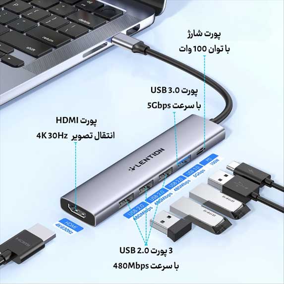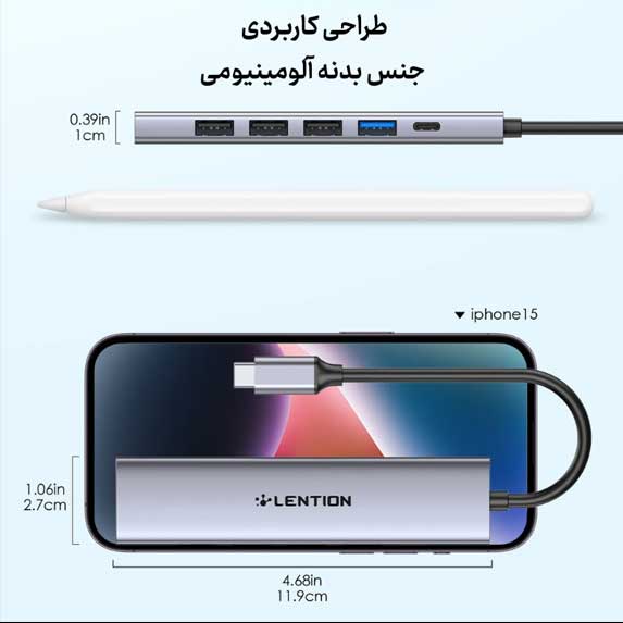 طراحی ظریف و بدنه آلومینیومی این هاب، علاوه بر زیبایی ظاهری، دوام و مقاومت آن را نیز افزایش داده است. این هاب با سازگاری کامل با تمامی سیستمعاملها و دستگاهها، انعطافپذیری بالایی را برای کاربران فراهم میکند و بدون نیاز به نصب درایور خاصی، به راحتی قابل استفاده است.