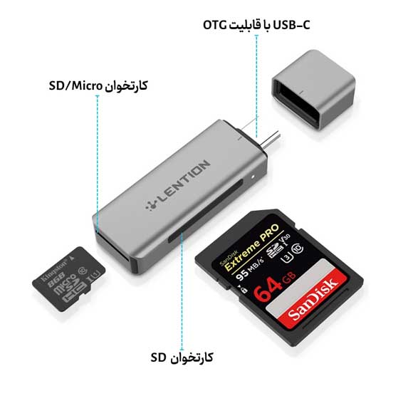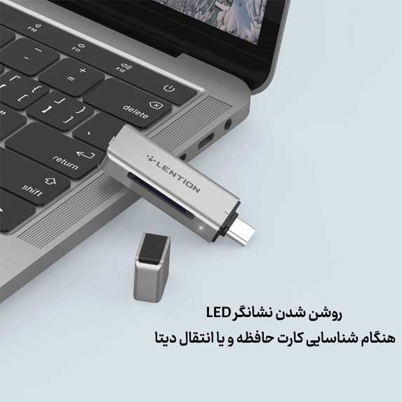 - چراغ نشانگر LED: هنگام شناسایی کارت حافظه یا انتقال داده، روشن میشود تا از وضعیت دستگاه مطلع شوید.