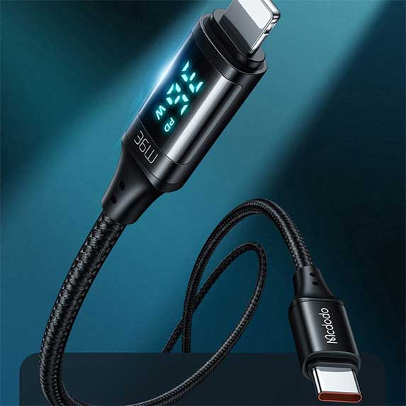 کابل Mcdodo CA-1030 با نمایشگر دیجیتال روی کانکتور، میزان دقیق توان ورودی به گوشی را به صورت لحظهای نشان میدهد. این کابل با پشتیبانی از فناوری PD، تا 36 وات توان خروجی دارد و برای شارژ سریع آیفونها ایدهآل است.