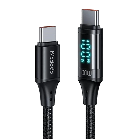 کابل Mcdodo CA-1100 با یک ویژگی منحصربهفرد عرضه شده است: نمایشگر دیجیتال توان لحظهای روی کانکتور. این نمایشگر به شما امکان میدهد میزان دقیق توان ورودی به دستگاه را در زمان واقعی مشاهده کنید. با پشتیبانی از شارژ سریع 100 وات، این کابل دو سر Type-C به شما اطمینان میدهد که دستگاههایتان با حداکثر سرعت ممکن شارژ شوند.