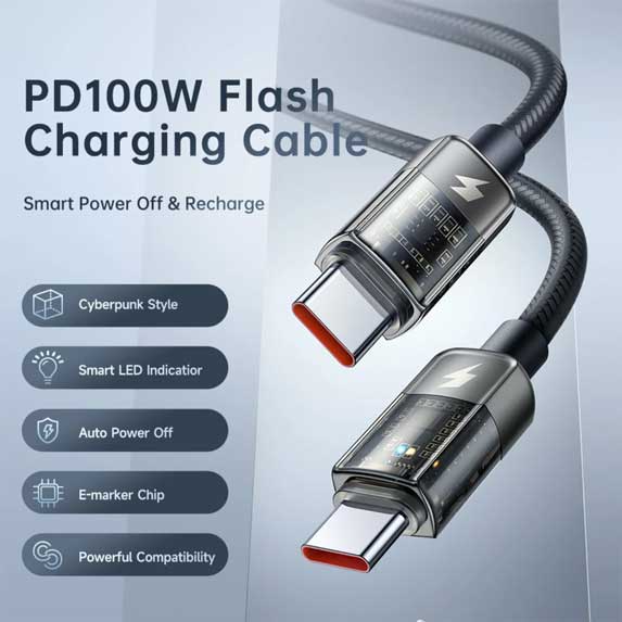 - طول کابل: 1.2 متر با روکش نایلون بافتهشده مقاوم در برابر سایش و گرهخوردگی