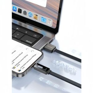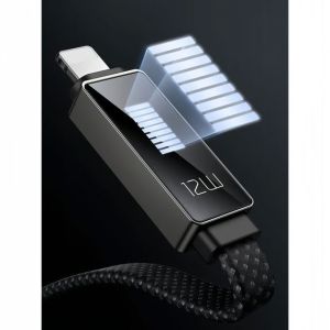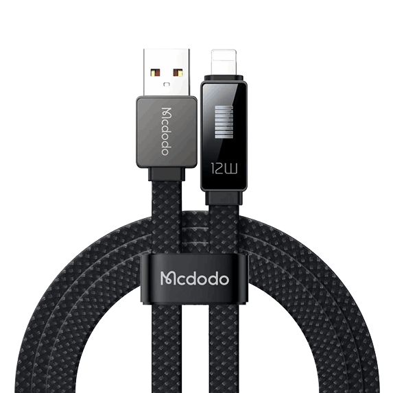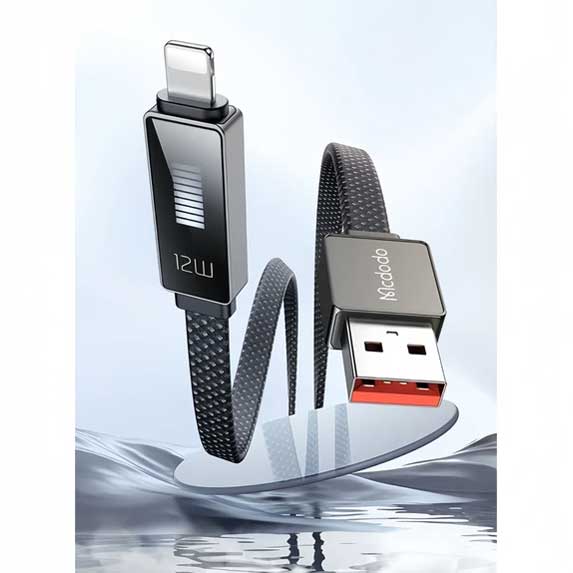 کانکتور این کابل مجهز به یک نمایشگر کوچک است که میزان شارژ دستگاه شما را به صورت لحظهای نشان میدهد. با اتصال به گوشیهای آیفون، این کابل توان خروجی تا 12 وات را پشتیبانی میکند و از یک سر USB و سر دیگر لایتینگ بهره میبرد.