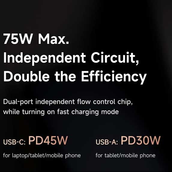 - حداکثر توان خروجی: 75 وات (تقسیمشده بین دو پورت در صورت استفاده همزمان)