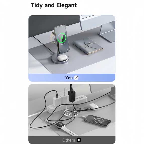 - شارژ همزمان 3 دستگاه: آیفون + اپل واچ + ایرپاد
