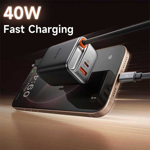 این شارژر دیواری با بهرهگیری از تکنولوژی نسل سوم GaN، تجربهای متفاوت از شارژ سریع و ایمن را ارائه میدهد. طراحی جمعوجور همراه با کابل یکپارچه، این محصول را به انتخابی ایدهآل برای استفاده روزمره و سفر تبدیل کرده است.