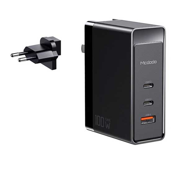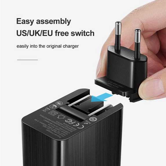 این شارژر با دو نوع دوشاخه UK و EU عرضه میشود و برای سفرهای بینالمللی مناسب است.