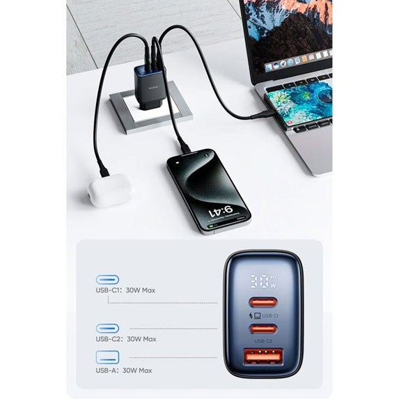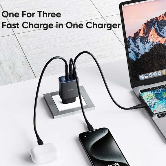 - 3 پورت شارژ (2 درگاه Type_C و 1 درگاه USB-A)
