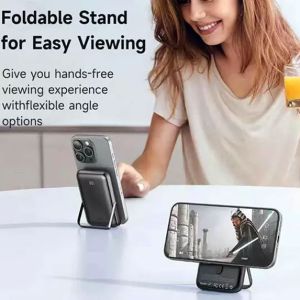 با معرفی آیفون 12 و پشتیبانی از فناوری MagSafe، بازار شارژرهای مغناطیسی رونق چشمگیری پیدا کرد. این پاوربانک بهصورت اختصاصی برای آیفونهای سری 12 به بعد طراحی شده و با استفاده از آهنرباهای داخلی قوی، اتصال پایدار و شارژ سریع را فراهم میکند. البته کاربران سایر گوشیها نیز میتوانند از حالت استند تاشو یا شارژ سیمی این پاوربانک بهره ببرند.