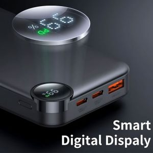 این پاوربانک مجهز به نمایشگر LED است که درصد دقیق شارژ باقی‌مانده را نمایش می‌دهد. با این ویژگی، می‌توانید برنامه‌ریزی بهتری برای شارژ دستگاه‌های خود داشته باشید و از تمام شدن ناگهانی شارژ جلوگیری کنید.