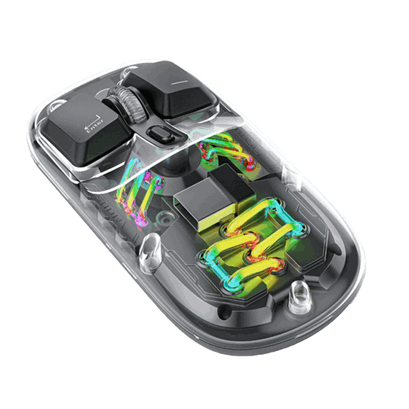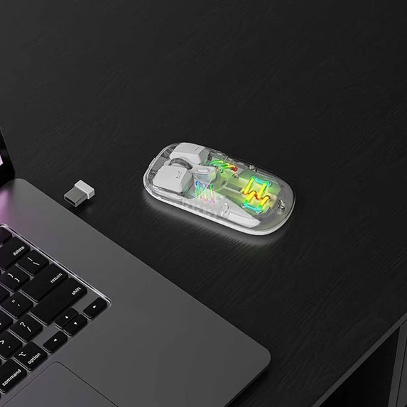 ماوس بی‌سیم پرودو PD-TMDM با ترکیب زیبایی شناسی منحصر به فرد و فناوری پیشرفته، تجربه‌ای متفاوت از کار با کامپیوتر را ارائه می‌دهد. این محصول با طراحی شفاف و نورپردازی RGB، همزمان هم زیبا و هم کاربردی است.