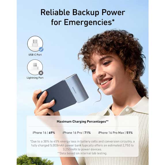 پاوربانک انکر نانو مدل A1653 با ظرفیت 5000 میلی‌آمپر ساعت و توان خروجی 22.5 وات، یک راه‌حل شارژ کاملاً قابل حمل ارائه می‌دهد. این دستگاه با طراحی هوشمندانه و فشرده، بدون اشغال فضای اضافی در جیب یا کیف شما جای می‌گیرد.