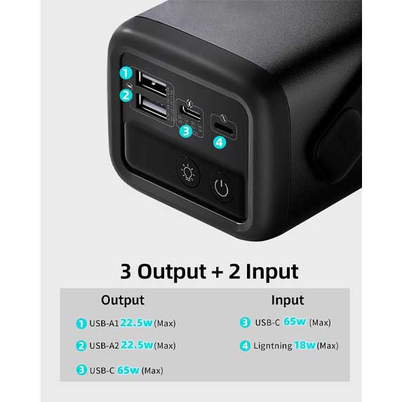 همچنین دارای دو پورت ورودی برای شارژ خود پاوربانک می‌باشد: