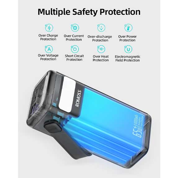 پاوربانک روموس مدل PMT40 با ظرفیت قابل توجه 40000 میلی آمپر ساعت و توان خروجی 65 وات، یک منبع انرژی قابل اعتماد و پرظرفیت برای کاربرانی است که به شارژ همزمان چندین دستگاه نیاز دارند. این محصول برای استفاده با لپ‌تاپ، تبلت، گوشی هوشمند و سایر گجت‌های الکترونیکی طراحی شده است.