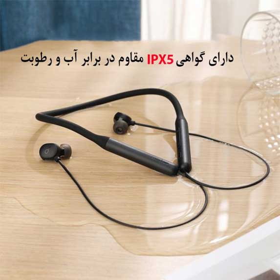 هندزفری گردنی انکر Anker Life U2i مطابق با استاندارد IPX5 ساخته شده و کاملاً ضد آب است. این ویژگی آن را برای استفاده در شرایط مختلف، بهویژه هنگام ورزش، ایدهآل میکند.