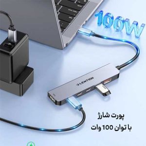 پورت شارژ این هاب با توان 100 وات و پشتیبانی از PD3.0، به شما این امکان را میدهد که دستگاههایتان را با سرعت و کارایی بالا شارژ کنید. با این ویژگی میتوانید دستگاههای پرمصرف را به هاب متصل کنید و نیازی به آداپتورهای جداگانه نداشته باشید.
