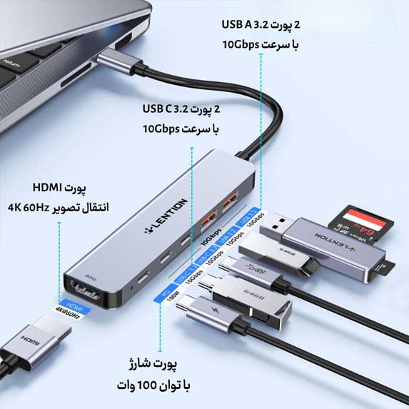 از دیگر ویژگیهای این هاب، پورت HDMI با کیفیت 4K 60Hz است که به شما اجازه میدهد دستگاههای خود را به تلویزیونها و مانیتورها متصل کنید و تصاویری با وضوح بالا ببینید.