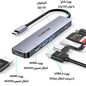 *خروجی تصویر 4K*: پورت HDMI این هاب امکان اتصال به مانیتورها یا تلویزیونهای 4K را فراهم میکند، که برای طراحان گرافیک و ویرایشگران ویدئو بسیار مفید است.