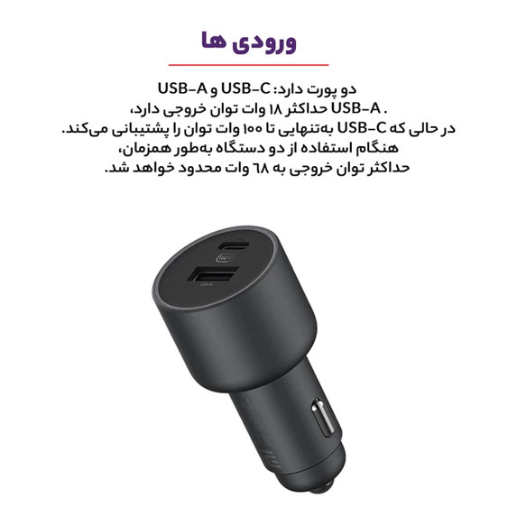شارژر فندکی شیائومی CC07ZM 100W راهحل هوشمند شارژ سریع در خودرو